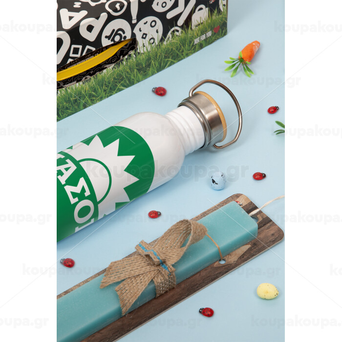 ΠΑΣΟΚ Πράσινο, Πασχαλινή Λαμπάδα με παγούρι μεταλλικό (620ml, stainless steel) & κερί αρωματικό πλακέ (30cm) (ΤΙΡΚΟΥΑΖ)