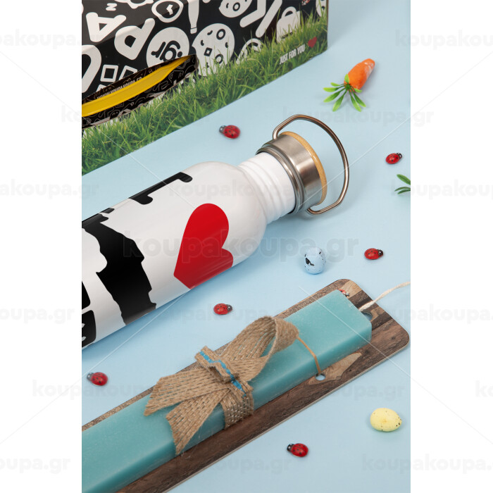 I Love Crete, Πασχαλινή Λαμπάδα με παγούρι μεταλλικό (620ml, stainless steel) & κερί αρωματικό πλακέ (30cm) (ΤΙΡΚΟΥΑΖ)