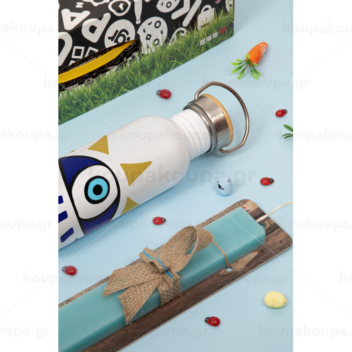 Μάτι, Πασχαλινή Λαμπάδα με παγούρι μεταλλικό (620ml, stainless steel) & κερί αρωματικό πλακέ (30cm) (ΤΙΡΚΟΥΑΖ)