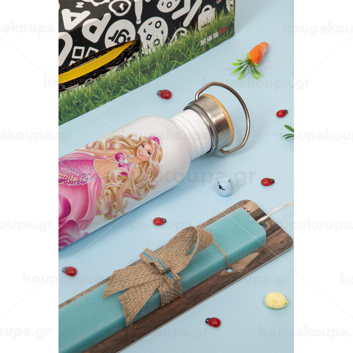 Barbie γοργόνα , Πασχαλινή Λαμπάδα με παγούρι μεταλλικό (620ml, stainless steel) & κερί αρωματικό πλακέ (30cm) (ΤΙΡΚΟΥΑΖ)
