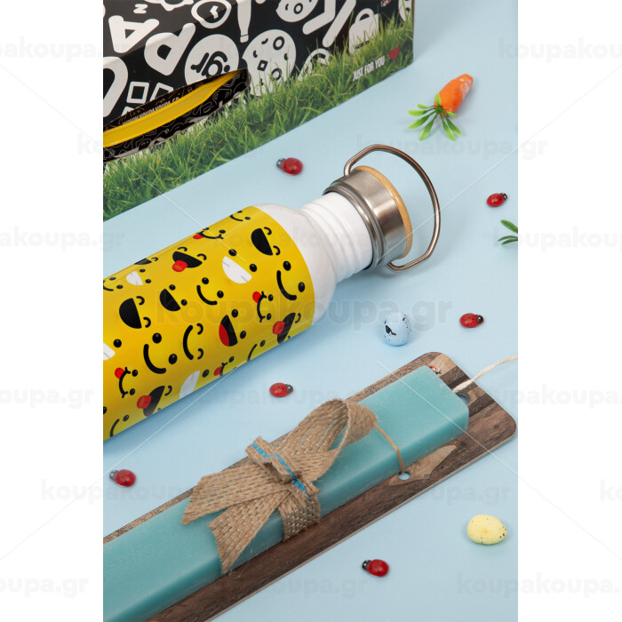 Smilies , Πασχαλινή Λαμπάδα με παγούρι μεταλλικό (620ml, stainless steel) & κερί αρωματικό πλακέ (30cm) (ΤΙΡΚΟΥΑΖ)