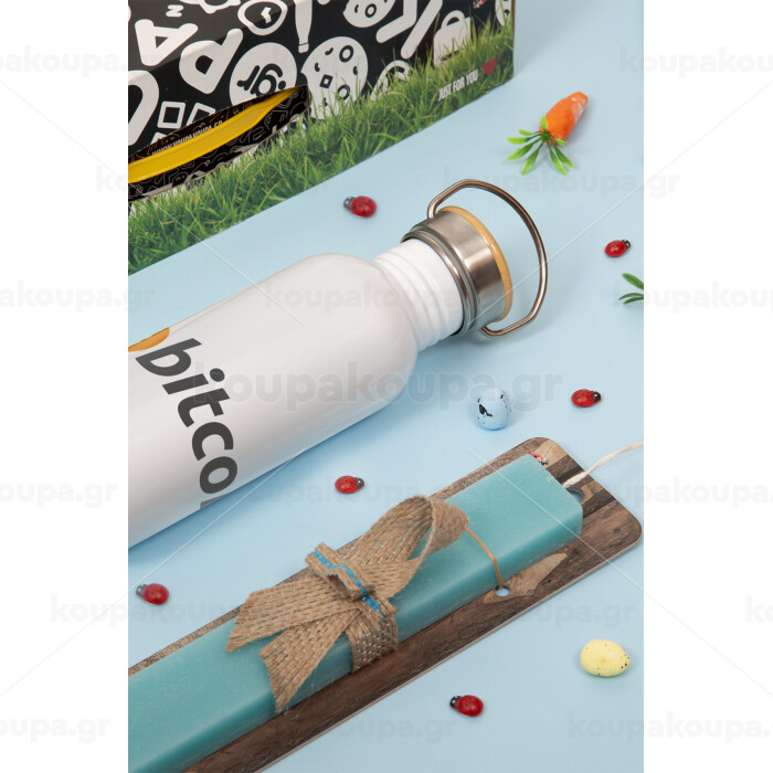 Bitcoin Crypto, Πασχαλινή Λαμπάδα με παγούρι μεταλλικό (620ml, stainless steel) & κερί αρωματικό πλακέ (30cm) (ΤΙΡΚΟΥΑΖ)