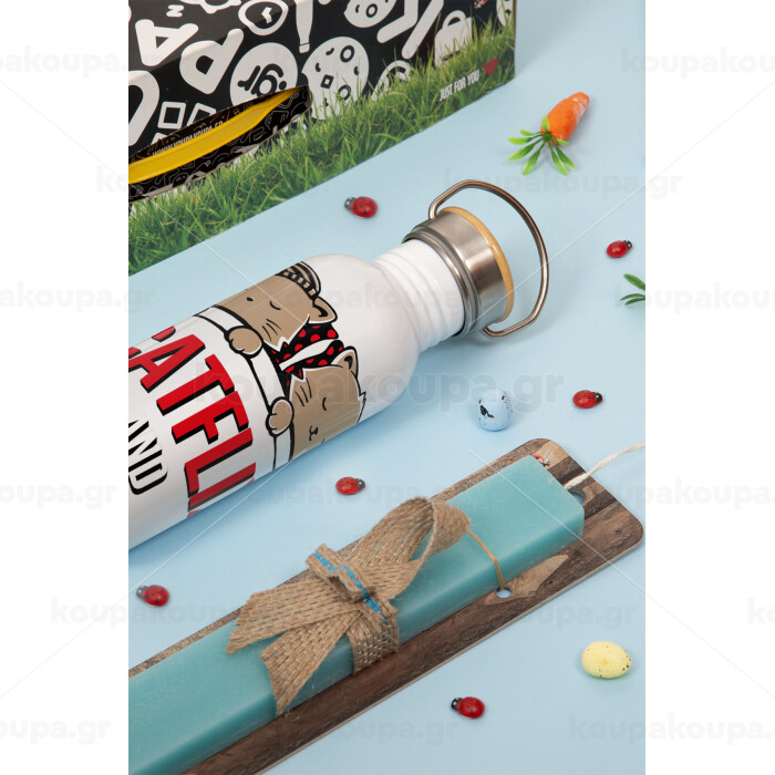 Catflix and Chill, Πασχαλινή Λαμπάδα με παγούρι μεταλλικό (620ml, stainless steel) & κερί αρωματικό πλακέ (30cm) (ΤΙΡΚΟΥΑΖ)