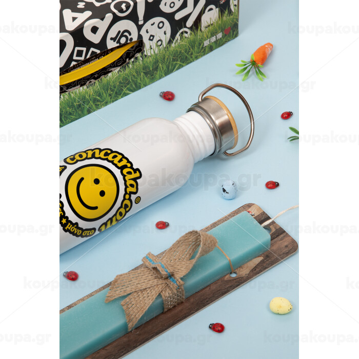 Concarda, Πασχαλινή Λαμπάδα με παγούρι μεταλλικό (620ml, stainless steel) & κερί αρωματικό πλακέ (30cm) (ΤΙΡΚΟΥΑΖ)