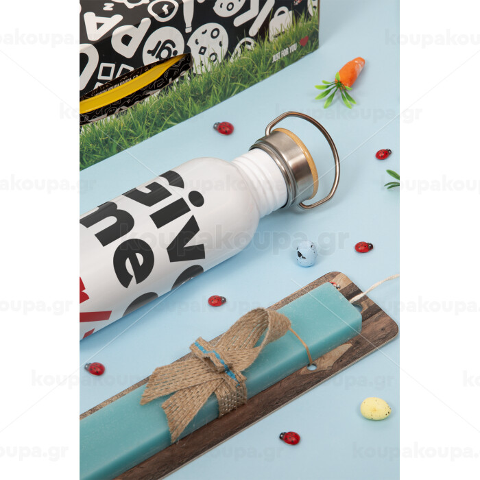 , Πασχαλινή Λαμπάδα με παγούρι μεταλλικό (620ml, stainless steel) & κερί αρωματικό πλακέ (30cm) (ΤΙΡΚΟΥΑΖ)