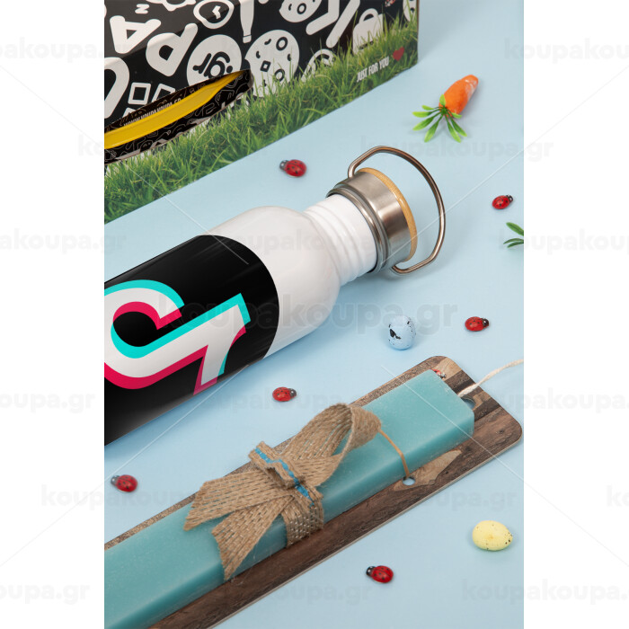 TikTok, Πασχαλινή Λαμπάδα με παγούρι μεταλλικό (620ml, stainless steel) & κερί αρωματικό πλακέ (30cm) (ΤΙΡΚΟΥΑΖ)