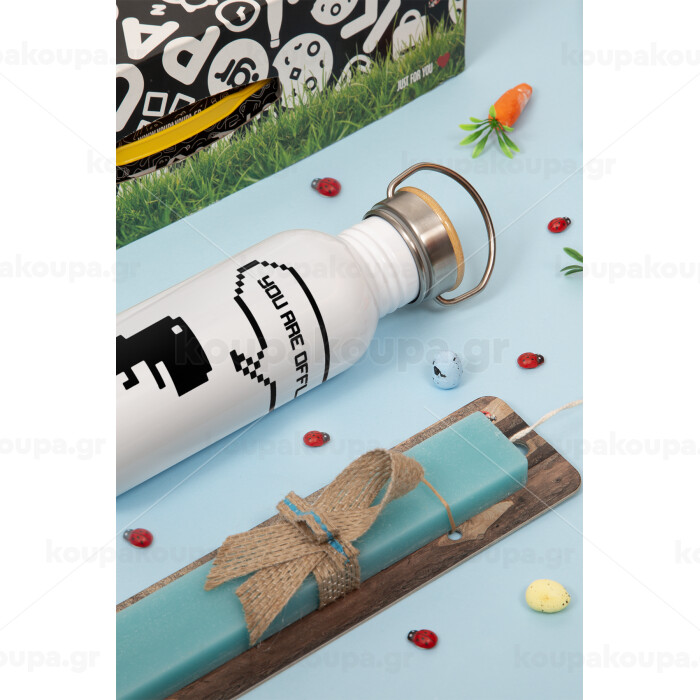 You are offline dinosaur, Πασχαλινή Λαμπάδα με παγούρι μεταλλικό (620ml, stainless steel) & κερί αρωματικό πλακέ (30cm) (ΤΙΡΚΟΥΑΖ)