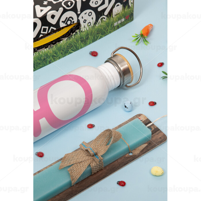 FEMALE, Πασχαλινή Λαμπάδα με παγούρι μεταλλικό (620ml, stainless steel) & κερί αρωματικό πλακέ (30cm) (ΤΙΡΚΟΥΑΖ)