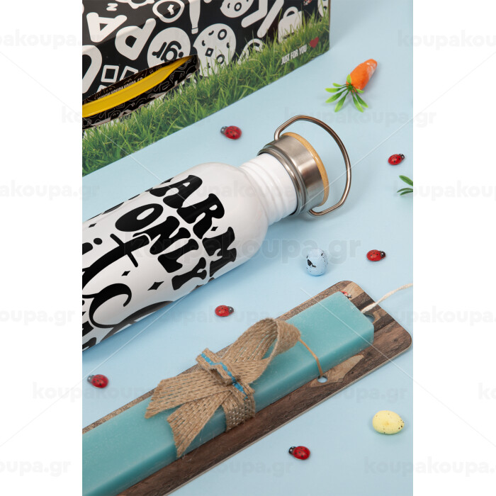 Karma is Only A Bitch if You Are, Πασχαλινή Λαμπάδα με παγούρι μεταλλικό (620ml, stainless steel) & κερί αρωματικό πλακέ (30cm) (ΤΙΡΚΟΥΑΖ)