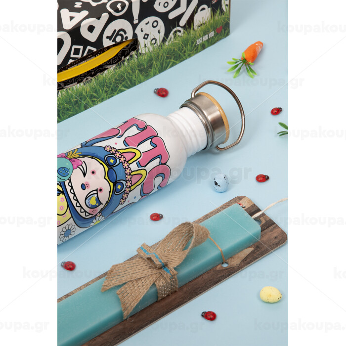Labubu Stitch, Πασχαλινή Λαμπάδα με παγούρι μεταλλικό (620ml, stainless steel) & κερί αρωματικό πλακέ (30cm) (ΤΙΡΚΟΥΑΖ)