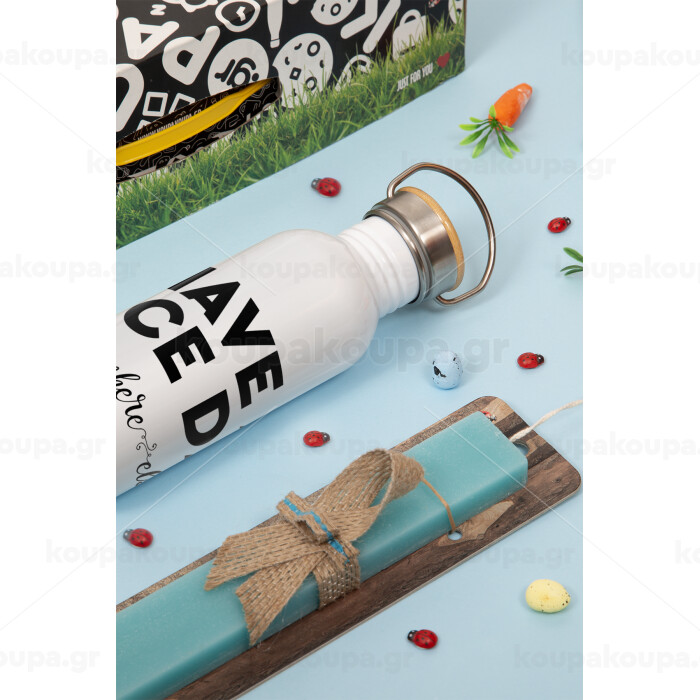 Have a nice day somewhere else, Πασχαλινή Λαμπάδα με παγούρι μεταλλικό (620ml, stainless steel) & κερί αρωματικό πλακέ (30cm) (ΤΙΡΚΟΥΑΖ)