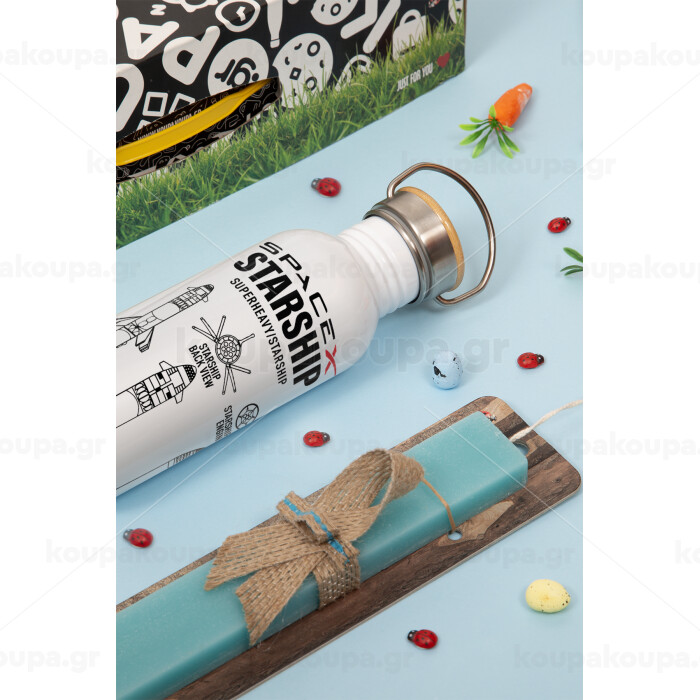 Space X, Πασχαλινή Λαμπάδα με παγούρι μεταλλικό (620ml, stainless steel) & κερί αρωματικό πλακέ (30cm) (ΤΙΡΚΟΥΑΖ)