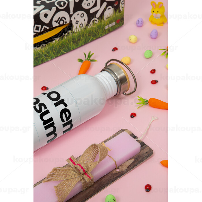 Lorem ipsum, Πασχαλινή Λαμπάδα με παγούρι μεταλλικό (620ml, stainless steel) & κερί αρωματικό πλακέ (30cm) (ΡΟΖ)