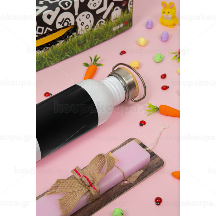 Pantone Black, Πασχαλινή Λαμπάδα με παγούρι μεταλλικό (620ml, stainless steel) & κερί αρωματικό πλακέ (30cm) (ΡΟΖ)