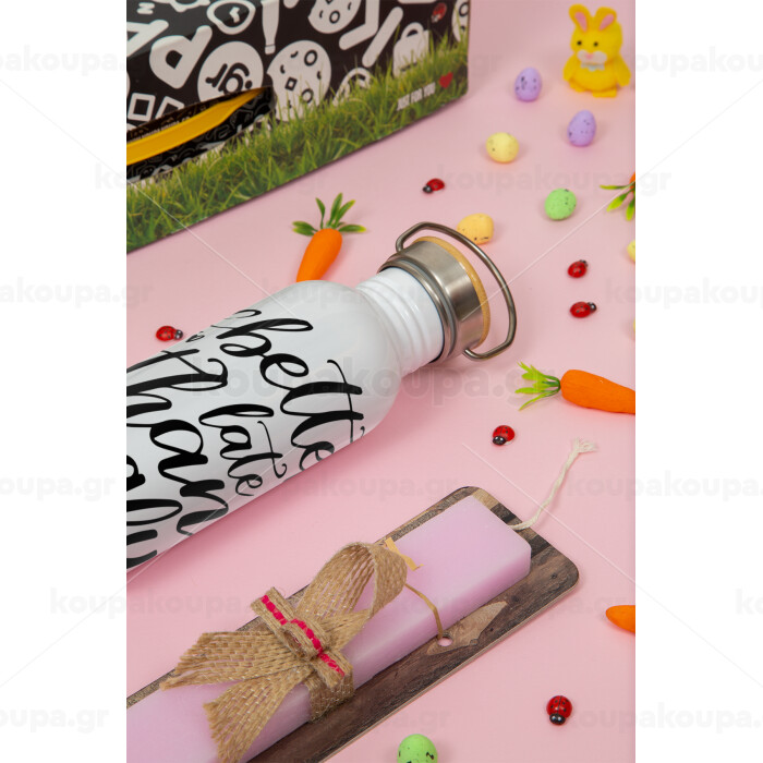 Better late than ugly, Πασχαλινή Λαμπάδα με παγούρι μεταλλικό (620ml, stainless steel) & κερί αρωματικό πλακέ (30cm) (ΡΟΖ)