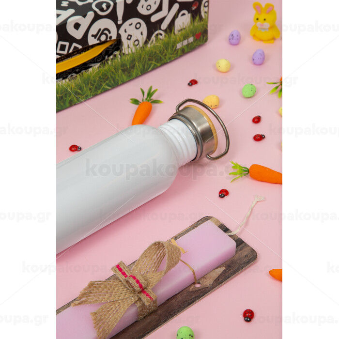 BLANK, Πασχαλινή Λαμπάδα με παγούρι μεταλλικό (620ml, stainless steel) & κερί αρωματικό πλακέ (30cm) (ΡΟΖ)