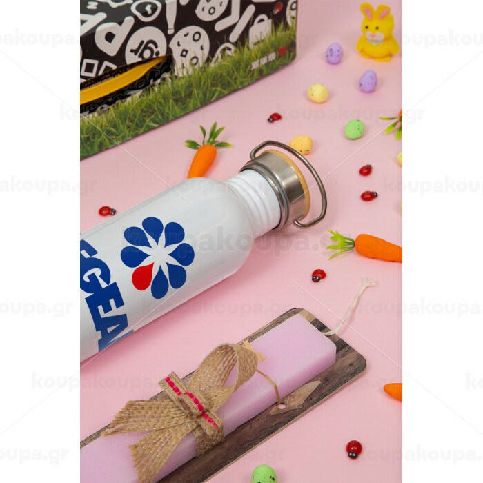 Πρατήριο καυσίμων AEGEAN, Πασχαλινή Λαμπάδα με παγούρι μεταλλικό (620ml, stainless steel) & κερί αρωματικό πλακέ (30cm) (ΡΟΖ)