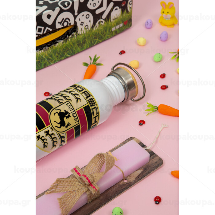 Porsche, Πασχαλινή Λαμπάδα με παγούρι μεταλλικό (620ml, stainless steel) & κερί αρωματικό πλακέ (30cm) (ΡΟΖ)