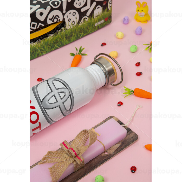 Toyota, Πασχαλινή Λαμπάδα με παγούρι μεταλλικό (620ml, stainless steel) & κερί αρωματικό πλακέ (30cm) (ΡΟΖ)