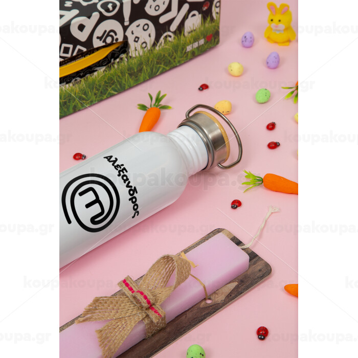 Master Chef Greece, Πασχαλινή Λαμπάδα με παγούρι μεταλλικό (620ml, stainless steel) & κερί αρωματικό πλακέ (30cm) (ΡΟΖ)