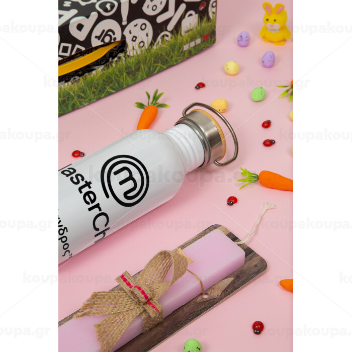 Master Chef, Πασχαλινή Λαμπάδα με παγούρι μεταλλικό (620ml, stainless steel) & κερί αρωματικό πλακέ (30cm) (ΡΟΖ)