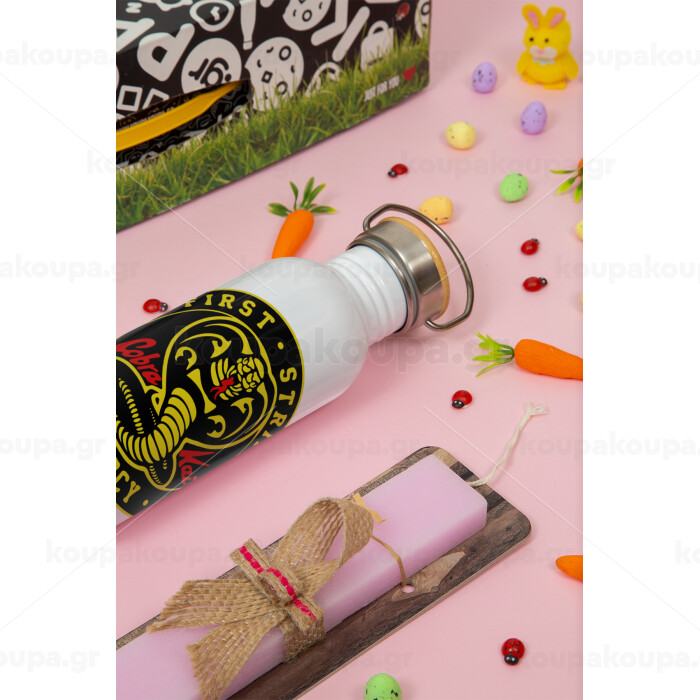 cobra kai strike first dojo, Πασχαλινή Λαμπάδα με παγούρι μεταλλικό (620ml, stainless steel) & κερί αρωματικό πλακέ (30cm) (ΡΟΖ)
