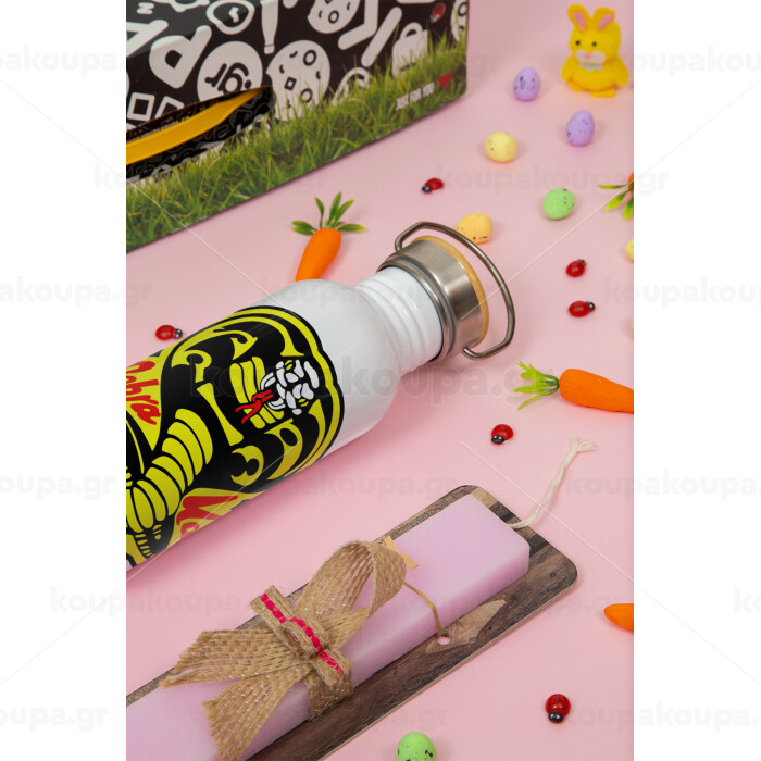 Cobra Kai Yellow, Πασχαλινή Λαμπάδα με παγούρι μεταλλικό (620ml, stainless steel) & κερί αρωματικό πλακέ (30cm) (ΡΟΖ)