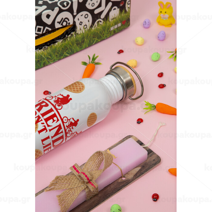 Friends Don't Lie, Stranger Things, Πασχαλινή Λαμπάδα με παγούρι μεταλλικό (620ml, stainless steel) & κερί αρωματικό πλακέ (30cm) (ΡΟΖ)