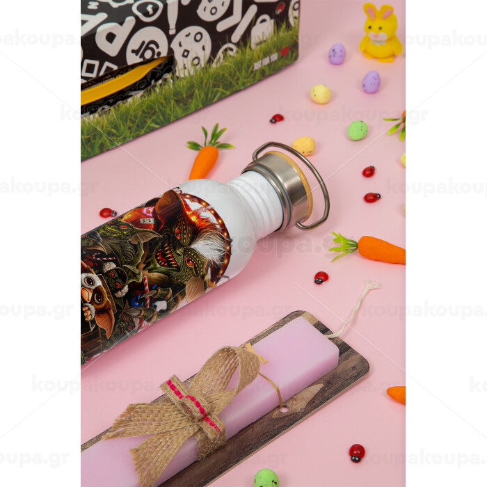 Gremlins, Πασχαλινή Λαμπάδα με παγούρι μεταλλικό (620ml, stainless steel) & κερί αρωματικό πλακέ (30cm) (ΡΟΖ)
