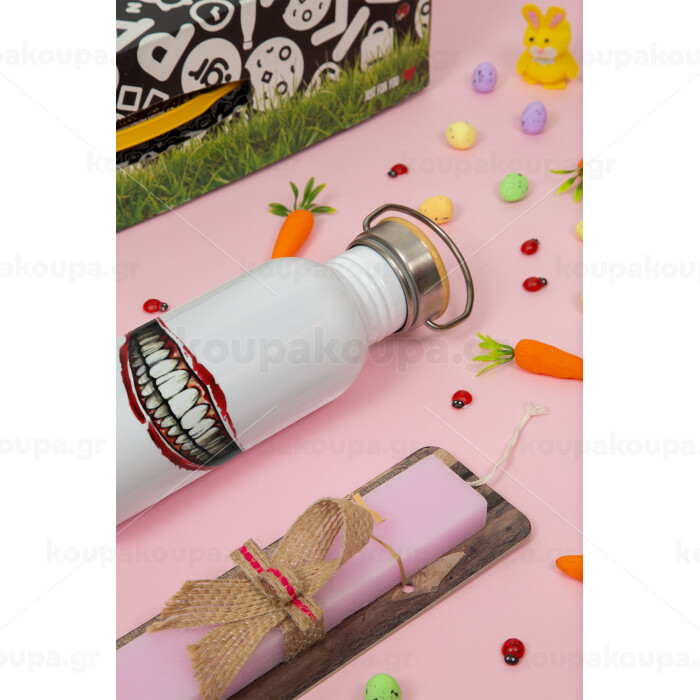 Joker smile, Πασχαλινή Λαμπάδα με παγούρι μεταλλικό (620ml, stainless steel) & κερί αρωματικό πλακέ (30cm) (ΡΟΖ)
