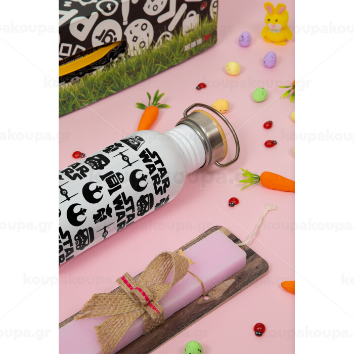 Star Wars Pattern, Πασχαλινή Λαμπάδα με παγούρι μεταλλικό (620ml, stainless steel) & κερί αρωματικό πλακέ (30cm) (ΡΟΖ)