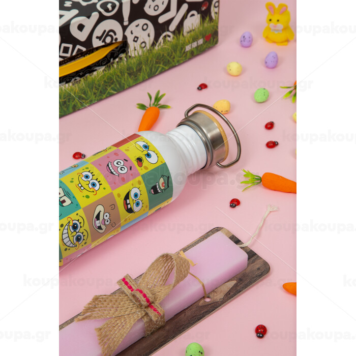 Ο μπομπ και οι φίλοι του, Πασχαλινή Λαμπάδα με παγούρι μεταλλικό (620ml, stainless steel) & κερί αρωματικό πλακέ (30cm) (ΡΟΖ)