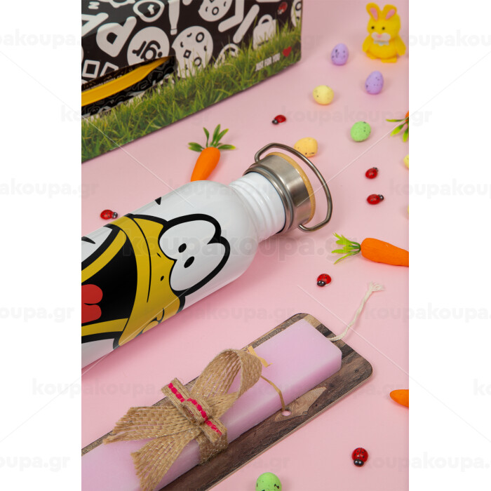 Daffy Duck, Πασχαλινή Λαμπάδα με παγούρι μεταλλικό (620ml, stainless steel) & κερί αρωματικό πλακέ (30cm) (ΡΟΖ)