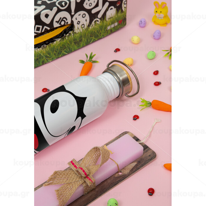 Felix the cat, Πασχαλινή Λαμπάδα με παγούρι μεταλλικό (620ml, stainless steel) & κερί αρωματικό πλακέ (30cm) (ΡΟΖ)