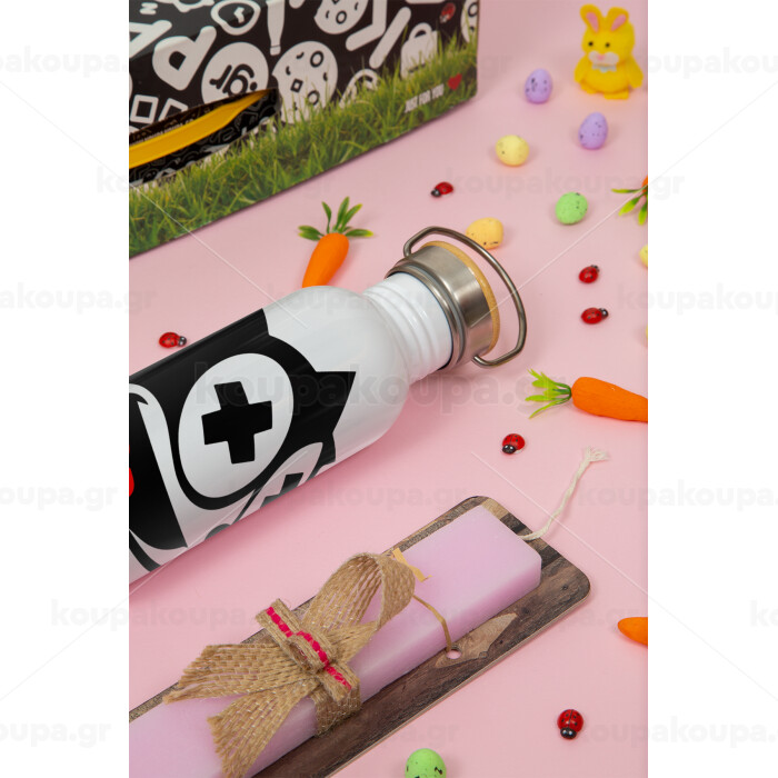 helix the cat, Πασχαλινή Λαμπάδα με παγούρι μεταλλικό (620ml, stainless steel) & κερί αρωματικό πλακέ (30cm) (ΡΟΖ)