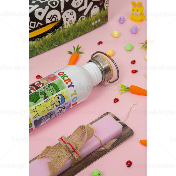 Inside Out It's Okay To Feel All The Feels , Πασχαλινή Λαμπάδα με παγούρι μεταλλικό (620ml, stainless steel) & κερί αρωματικό πλακέ (30cm) (ΡΟΖ)