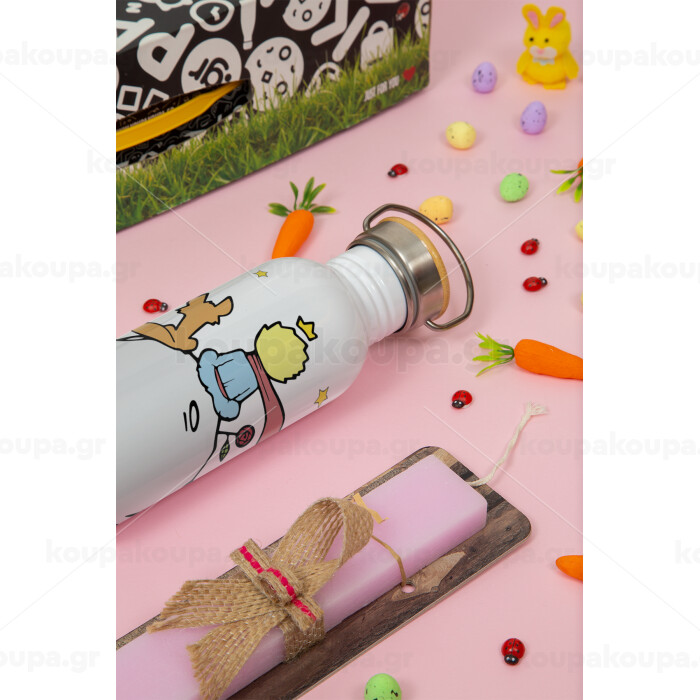 Little prince, Πασχαλινή Λαμπάδα με παγούρι μεταλλικό (620ml, stainless steel) & κερί αρωματικό πλακέ (30cm) (ΡΟΖ)