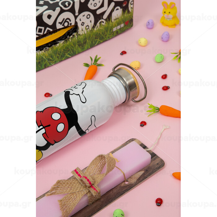 Mickey hide..., Πασχαλινή Λαμπάδα με παγούρι μεταλλικό (620ml, stainless steel) & κερί αρωματικό πλακέ (30cm) (ΡΟΖ)
