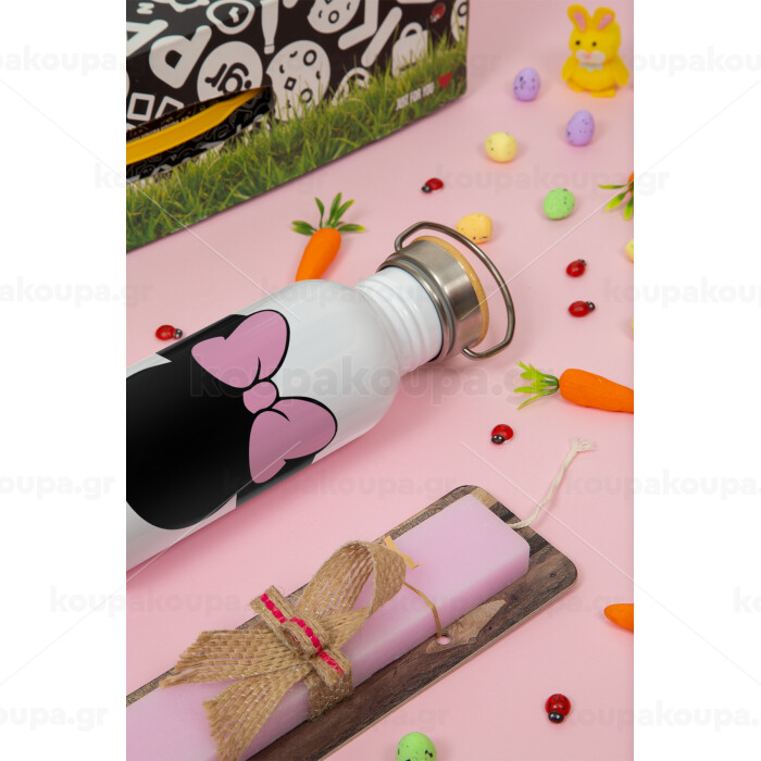 mouse girl, Πασχαλινή Λαμπάδα με παγούρι μεταλλικό (620ml, stainless steel) & κερί αρωματικό πλακέ (30cm) (ΡΟΖ)