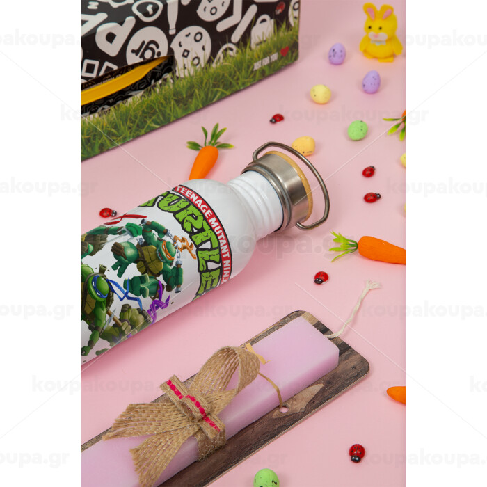 Ninja turtles, Πασχαλινή Λαμπάδα με παγούρι μεταλλικό (620ml, stainless steel) & κερί αρωματικό πλακέ (30cm) (ΡΟΖ)