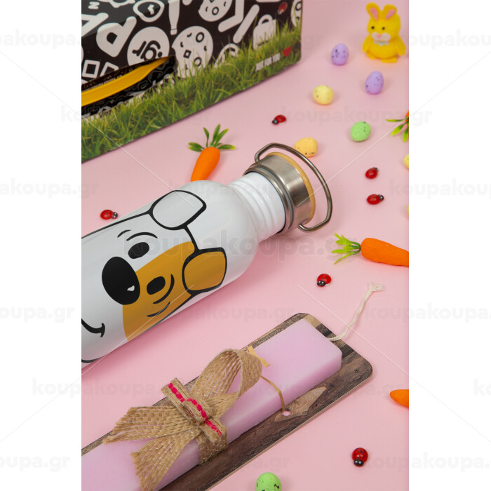 reksio bolek i lolek, Πασχαλινή Λαμπάδα με παγούρι μεταλλικό (620ml, stainless steel) & κερί αρωματικό πλακέ (30cm) (ΡΟΖ)