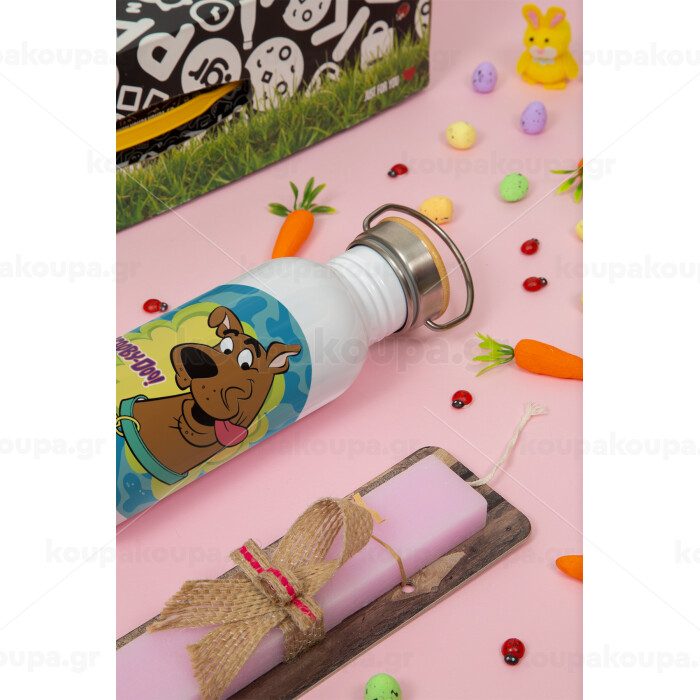 Scooby Doo, Πασχαλινή Λαμπάδα με παγούρι μεταλλικό (620ml, stainless steel) & κερί αρωματικό πλακέ (30cm) (ΡΟΖ)