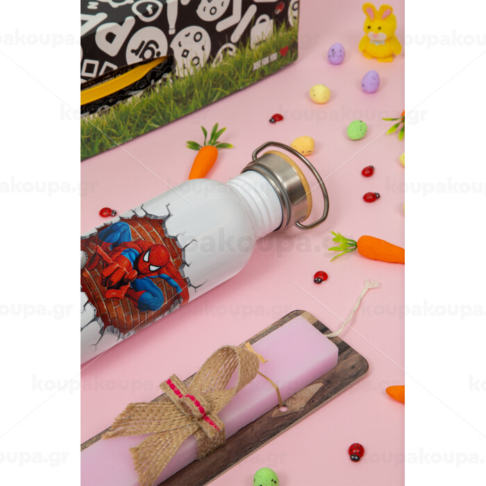 Spiderman wall, Πασχαλινή Λαμπάδα με παγούρι μεταλλικό (620ml, stainless steel) & κερί αρωματικό πλακέ (30cm) (ΡΟΖ)