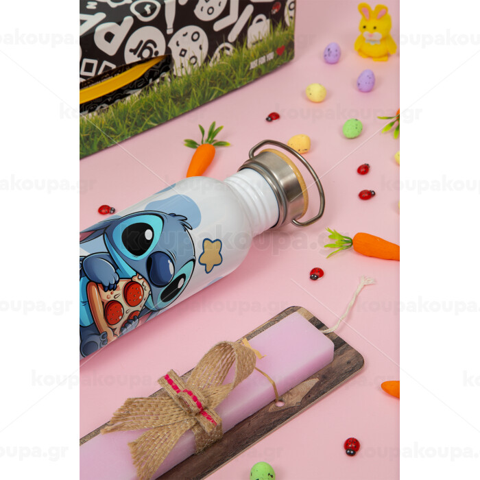 Stitch Pizza, Πασχαλινή Λαμπάδα με παγούρι μεταλλικό (620ml, stainless steel) & κερί αρωματικό πλακέ (30cm) (ΡΟΖ)