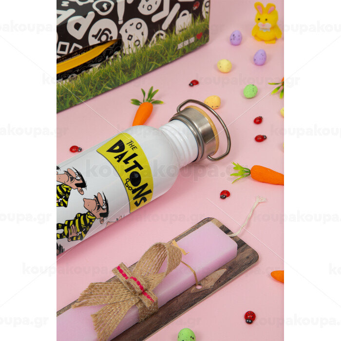 The Daltons, Πασχαλινή Λαμπάδα με παγούρι μεταλλικό (620ml, stainless steel) & κερί αρωματικό πλακέ (30cm) (ΡΟΖ)