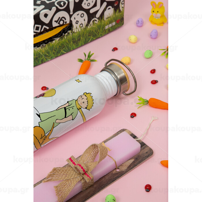 Ο μικρός πρίγκιπας classic, Πασχαλινή Λαμπάδα με παγούρι μεταλλικό (620ml, stainless steel) & κερί αρωματικό πλακέ (30cm) (ΡΟΖ)