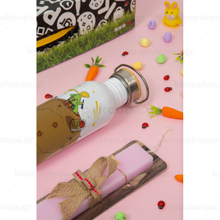 Ο μικρός πρίγκιπας planet, Πασχαλινή Λαμπάδα με παγούρι μεταλλικό (620ml, stainless steel) & κερί αρωματικό πλακέ (30cm) (ΡΟΖ)