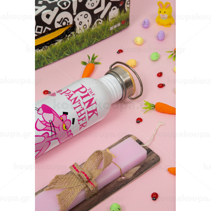 The pink panther, Πασχαλινή Λαμπάδα με παγούρι μεταλλικό (620ml, stainless steel) & κερί αρωματικό πλακέ (30cm) (ΡΟΖ)