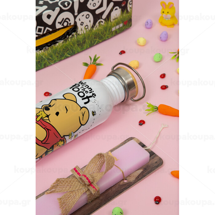 Γουίνι το Αρκουδάκι , Πασχαλινή Λαμπάδα με παγούρι μεταλλικό (620ml, stainless steel) & κερί αρωματικό πλακέ (30cm) (ΡΟΖ)