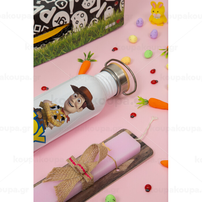 Woody cowboy, Πασχαλινή Λαμπάδα με παγούρι μεταλλικό (620ml, stainless steel) & κερί αρωματικό πλακέ (30cm) (ΡΟΖ)